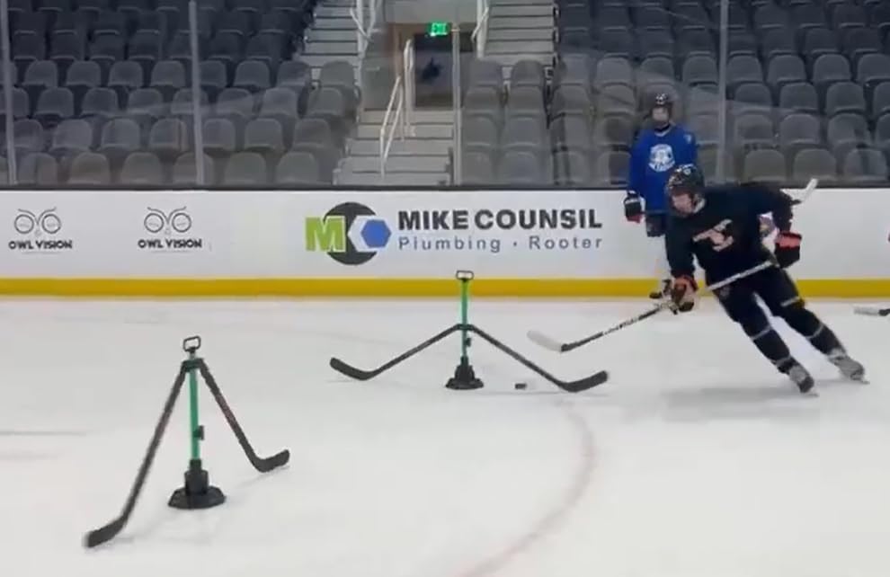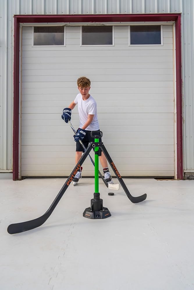 Take your off-ice and on-ice training to the next level with the Potent Spin Defender, a next-generation stickhandling trainer designed to recreate the pressure, movement, and unpredictability of a real defender. This interactive training system forces players to react faster, protect the puck longer, and make smarter decisions—bridging the gap between basic drills and true game-readiness. Realistic Defensive Movement - At the core of the Spin Defender is an intelligent rotation system built to challenge players in real time. Dual-speed modes allow you to train at 20 RPM for precision and control or 30 RPM for high-tempo, reaction-based drills. Automatic direction changes every five minutes prevent pattern recognition, while the soft start and gradual stop ensure safe, controlled operation during every session. Fully Adjustable for Any Player - The Spin Defender adapts to all skill levels and training goals. Defender arms can be inserted at different heights and positions to simulate anything from light defensive pressure to aggressive 1-on-1 scenarios. Integrated 15-minute training cycles with built-in rest intervals mirror real shift patterns while protecting the motor for long-term durability. Built for Performance, Anywhere You Train - Designed for both ice and off-ice use, the stable base features retractable spikes that anchor securely on real ice or Potent Synthetic Ice Tiles. Its lightweight yet rugged construction makes it easy to transport while standing up to daily training demands. A rechargeable battery delivers over two hours of continuous runtime, keeping sessions uninterrupted. Wireless Control, Seamless Flow - A compact wireless remote gives players or coaches full control from up to 20 meters away. Start, stop, reverse rotation, or change speeds instantly—perfect for solo skill sessions or coach-led drills without breaking momentum. Simple, Safe, and Reliable - Setup takes seconds with tool-free assembly. LED status indicators clearly show charging and ready states, while the weather-resistant housing ensures consistent performance in temperatures ranging from -10°C to 40°C, making it a dependable training tool year-round. Who It's Designed For - Players: Improve puck protection, reaction time, and confidence in tight defensive situations - Coaches: Run dynamic, game-like drills without needing an extra player - Training Facilities: Add an engaging, low-maintenance tool to camps and academies Key Specifications - Battery Life: 2+ hours (approx. 3-hour recharge) - Rotation Speeds: 20 RPM & 30 RPM - Remote Range: Up to 20 meters - Construction: High-impact plastic with reinforced metal components - Portable & lightweight design Train smarter. React faster. Compete harder. - Whether you're refining your edge in solo sessions or developing elite-level players, the Potent Spin Defender turns everyday stickhandling into realistic, game-ready training. Elevate your practice—and your performance.