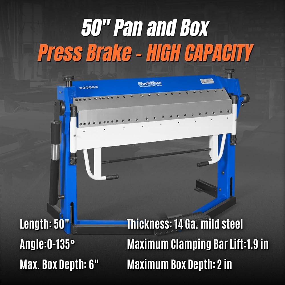 50-Inch Foot Clamp Pan and Box Brake, Industrial Heavy Duty Sheet Metal Folding Machine, 0–135° Bending Angle, 1.9" Clamping Lift, 2" Box Depth, Model PB2A5014