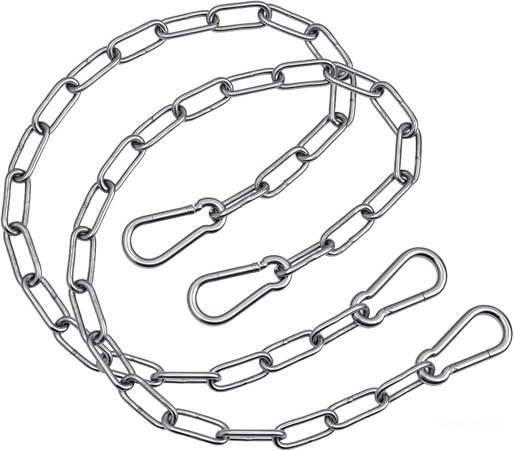 Nextpal's Double-Pack Heavy-Duty Stainless Steel Chain Set provides reliable and adjustable support for a variety of residential, recreational, and light-duty projects. This versatile and durable chain set is designed for both indoor and outdoor use. Each chain is made of corrosion-resistant 304 grade stainless steel, offering excellent rust resistance and environmental abrasion resistance, ensuring long-term use in a variety of conditions. The robust link design maintains structural integrity even under load, providing a reliable way to suspend or secure the chain without compromising strength or appearance over time. Each chain is equipped with secure and reliable high-strength carabiners at both ends for quick and easy attachment to various anchor points such as eye bolts, beams, or branches; the carabiners feature a reliable locking mechanism that simplifies installation. The chain design allows you to easily adjust the effective length by connecting different links, providing flexibility to achieve the desired height, tension, or installation configuration. This product can meet the hanging and fixing needs in a variety of scenarios. It is often used to hang punching bags, swings, hammocks, chairs, outdoor signs, or to fix gates and reinforce lightweight structures. Its main function is to establish a safe and adjustable connection point between the object and the support above, making it an essential component of home gyms, terraces, gardens and studios.