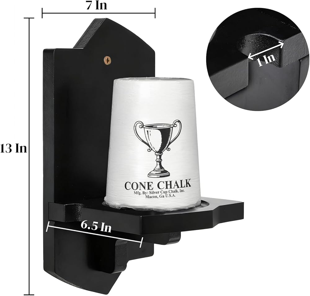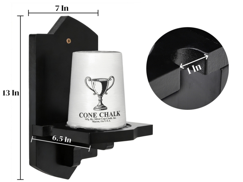 What You Will Get: You will receive a wood cone chalk holder in this package, no cone chalk included. Measuring around 13"H*7"L*6.5"W, the diameter of the wood dowel features 1 inch/ 2.5 cm, suitable for most pool cone chalks.