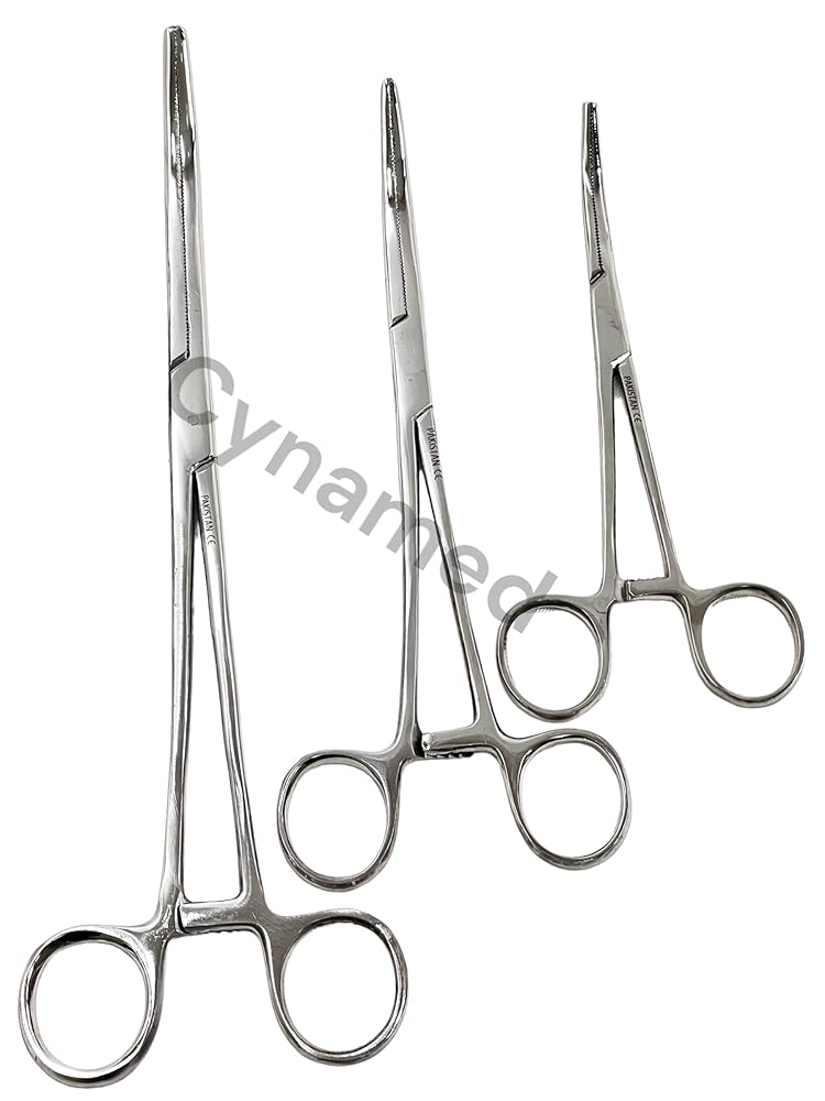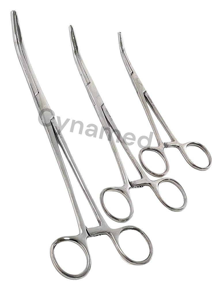 Cynamed-Set of 3 Pean HEMOSTAT Forceps Curved 6" 8" 10" Hemostat Forceps Tongs Full Serrated Stainless Steel