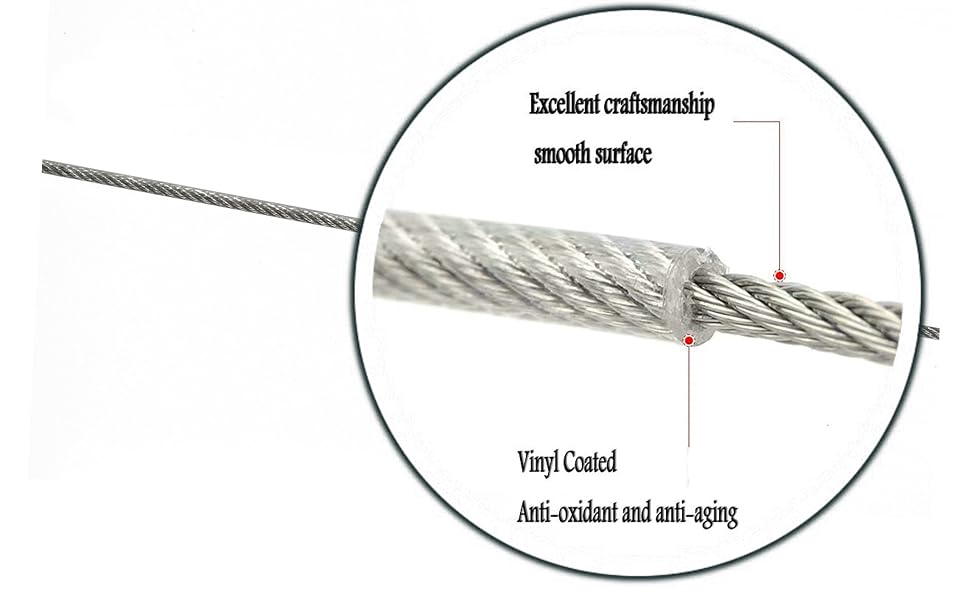 This Vinyl Coated wire rope cable is made of 304 grade stainless steel, with superior corrosion resistance to water, rust, acid.Perfect for indoor and outdoor applications.Vinyl coat enhanced the resistance to water and other corrosion which make it much more durable