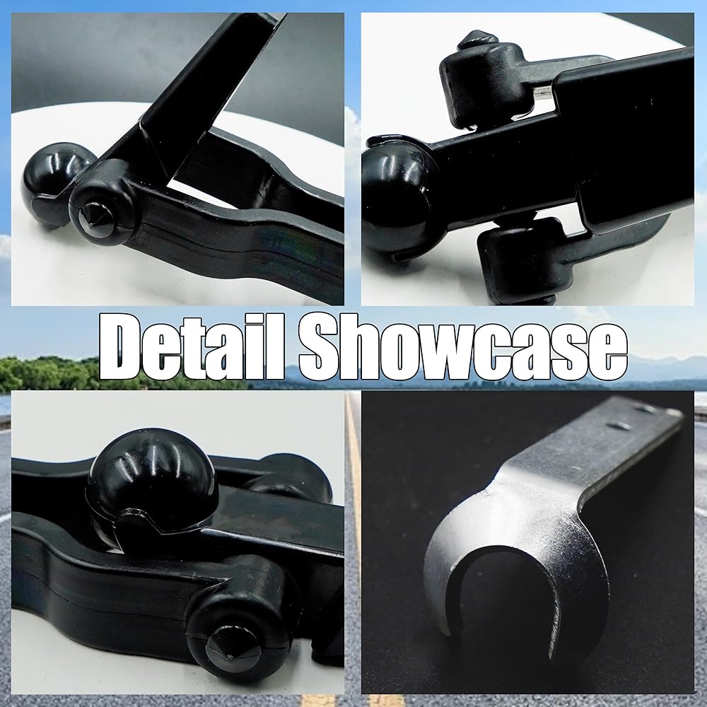 Complete Kit with Durable Construction: Your purchase includes a pair of all necessary components: two ball-style hood latch straps, two matching hood latch brackets, and two corresponding hood latch clamps. The locking strap is constructed from high-strength composite material, combining flexibility with abrasion resistance. The brackets and clamps are manufactured from durable materials, enabling effective operation under various working conditions and significantly extending the kit's service life.
