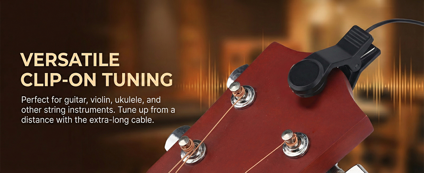 VIBRATION-BASED NOISE ELIMINATION: Unlike traditional microphones that pick up background noise, this contact microphone works by directly sensing the vibration of the instrument. It effectively eliminates external sound interference, making it the perfect tool for tuning your guitar, violin, or ukulele in noisy environments, backstage, or crowded music classrooms without being disturbed.