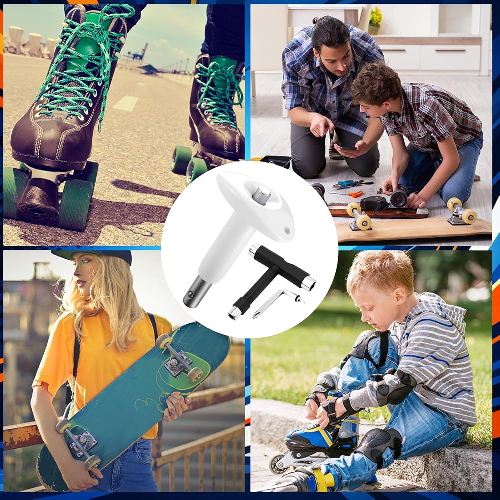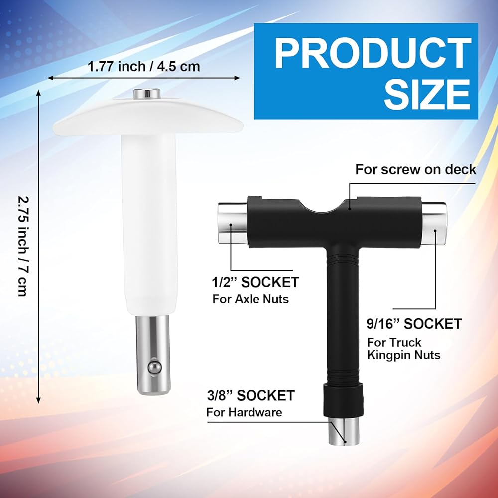 Multi Function T-wrench: the included t-handle wrench functions as a multi-purpose skateboard tool; It can be used for adjusting axle nuts, mounting hardware, and truck pivot nuts, supporting various assembly and tuning steps