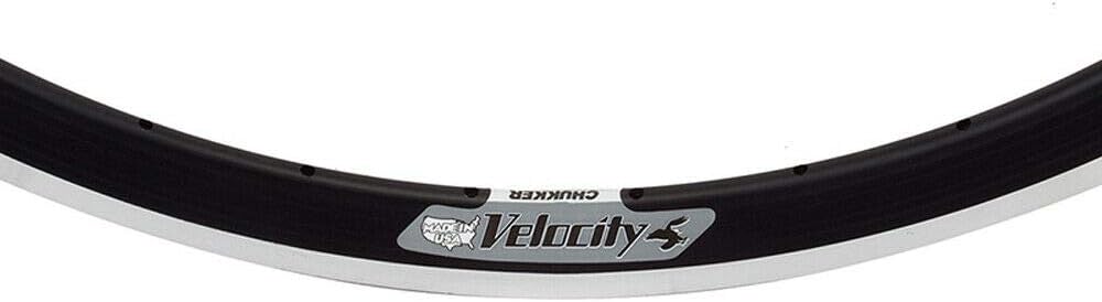 Introducing the Velocity Chukker 700C Black Alloy Rim - the perfect choice for cycling enthusiasts seeking durability, lightweight performance, and sleek style. Engineered with precision and crafted from materials, this 700C rim is designed to elevate your riding experience, whether you're hitting the city streets or exploring mountain trails. Materials and Construction: Made from aluminum alloy, the Velocity Chukker rim offers exceptional strength-to-weight ratio, ensuring longevity and reliability under demanding cycling conditions. The double-wall construction enhances durability and impact resistance, making it a dependable component for everyday riding and intense cycling adventures. Performance & Engineering: Featuring a 700C (622mm ISO) size with an 18mm internal width and a 24mm overall diameter, the Chukker rim provides optimal support and stability for 700c tires. With a drilled 36-spoke hole pattern, it ensures uniform spoke tension and improved wheel trueness. The rim's robust Double Wall wall and precise engineering contribute to smoother rides, better handling, and enhanced brake response. Components & Technology: Designed specifically for tube-only use, this rim features a 580mm effective rim diameter (ERD) for easy setup and compatibility. The 32-profile section delivers a light yet stiff wheel, perfect for road, hybrid, or gravel cycling applications. Equipped with a Presta valve compatibility, it supports high-pressure tires for improved performance. Style & Use Case: With a sleek matte black finish, the Velocity Chukker rim adds a touch of modern style to any bike build. Its versatile profile makes it suitable for various cycling disciplines, including road cycling, commuting, and gravel adventures. Whether upgrading your existing Rims or building a custom bike, this rim offers excellent value and top-tier aesthetics. Innovative Features & Benefits: - Aluminum Alloy for durability and lightweight performance - Do