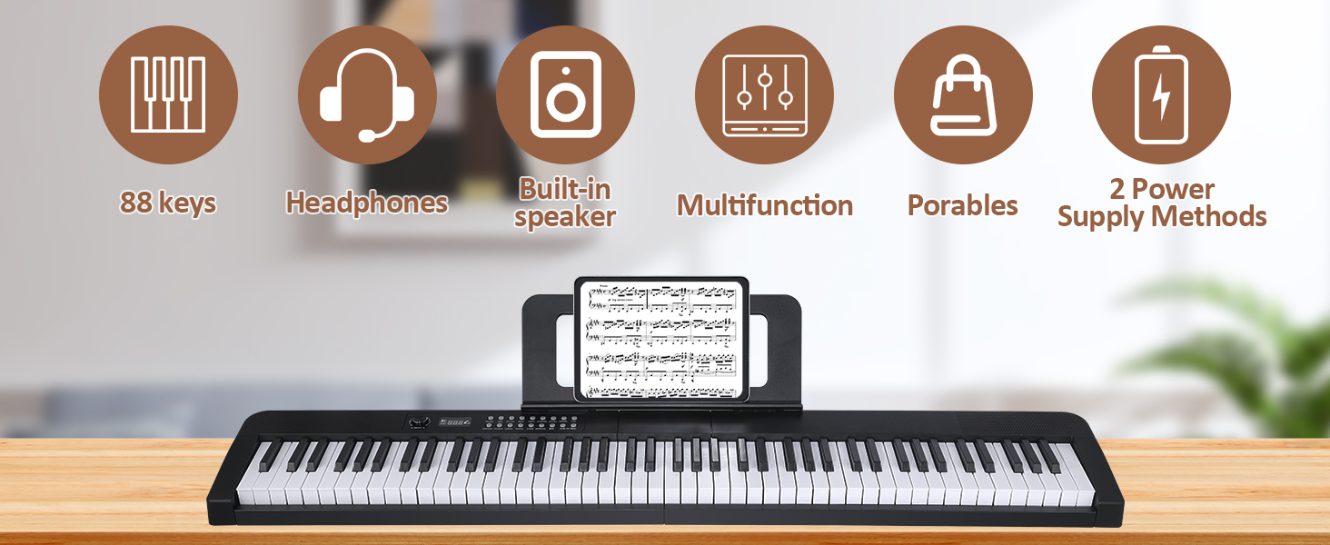 • 🎹【Weighted Digital Piano】- The digital piano with 88 SEMI-Weighted Keys simulates the real touch of playing the piano. Half-weighted keys reduce the sense of strength than full-weighted keys, for more sensitive touch response to suit different playing styles, suitable for beginners.