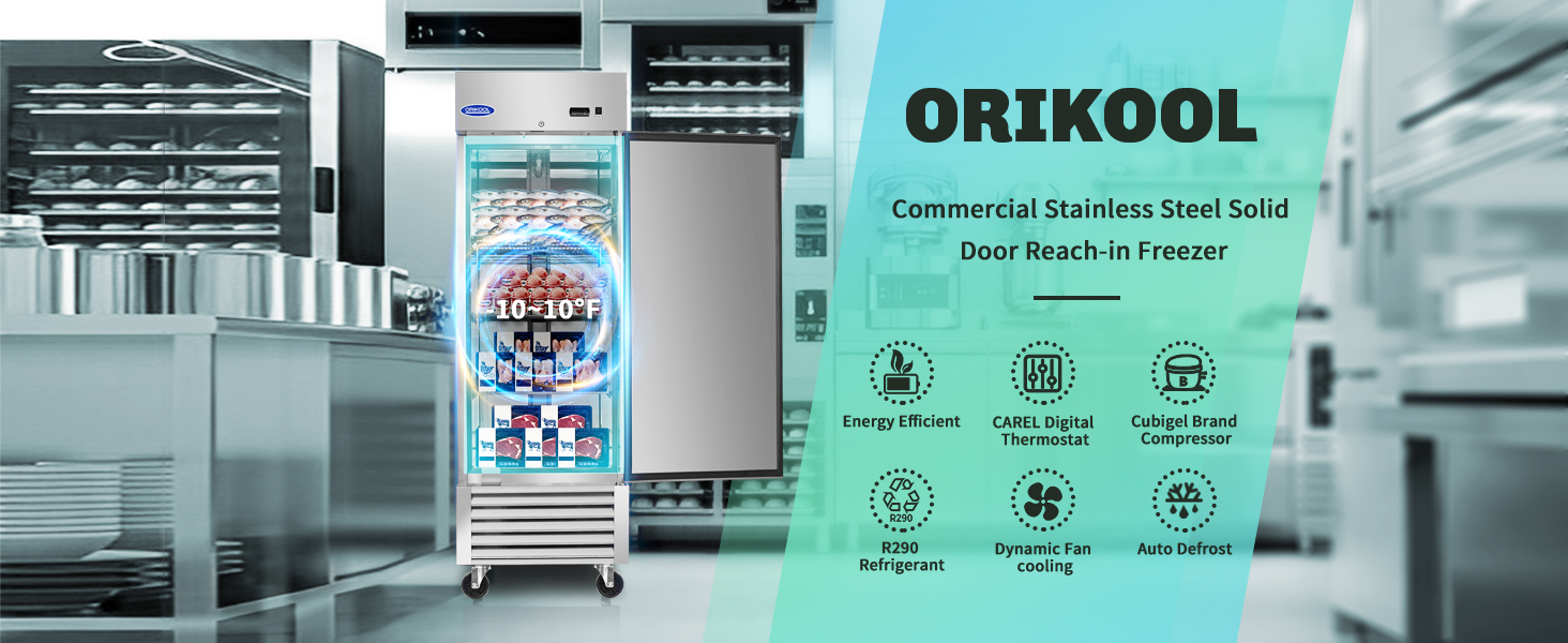Auto-Defrost & Precise Temperature Control - The freezer maintains a consistent -10°F to 10°F range with ±1°F accuracy, featuring 8-hour interval auto-defrost cycles. The heated stainless steel door frame completely prevents frost buildup, and the top-mounted LED light strip provides optimal visibility for inventory checks