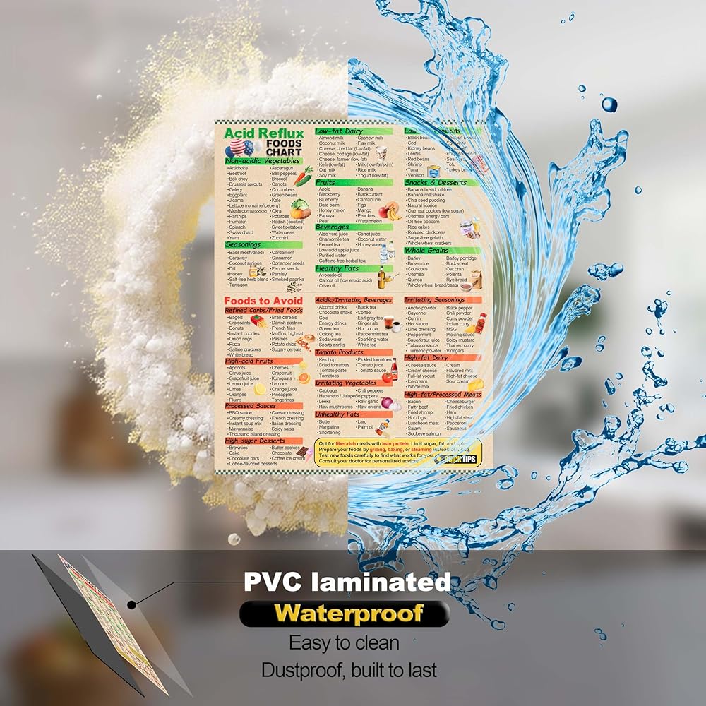 Durable Laminated Surface: The laminated design offers water resistance and easy cleaning, maintaining the GERD food list's integrity in humid kitchen environments over time.