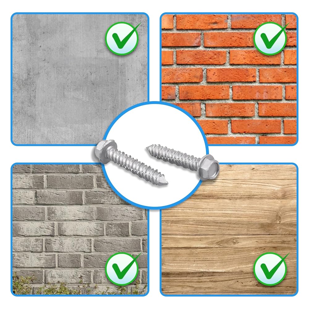 Universal Material Compatibility:These versatile stainless steel concrete screws are ideal for use in concrete, block, brick, and other masonry surfaces, making them reliable concrete screws 1/4" for a wide range of construction and repair projects.