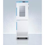 Sized just under 24" wide, this unit features an upper refrigerator compartment with a small window and an independent manual defrost freezer below. Both sections include adjustable plastic-coated wire shelves that can be positioned at 1/2" increments to accommodate virtually any-sized item. This unit includes LED internal lighting with an on/off rocker switch. The interior is constructed from white powder-coated metal to ensure added durability and better temperature retention.