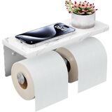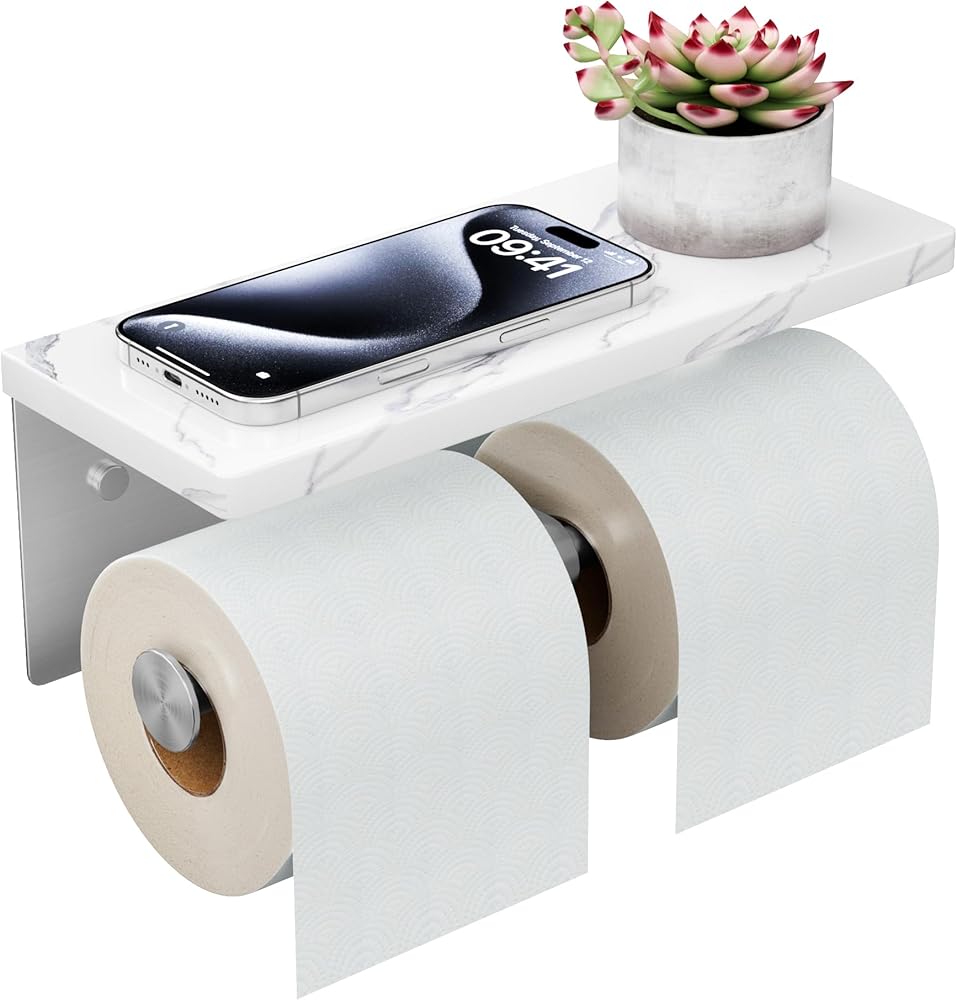 【High Quality and Durability】Made of SUS304 stainless steel and natural marble, the double toilet roll paper holder with phone storage is durable and resistant to scratches, corrosion, and tarnishing. Modern and simple design, perfect for a domestic or commercial bathroom