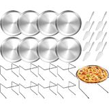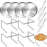 Complete All-in-One Pizza Making & Serving Set: This 12-piece pizza pan riser stands kit is your ultimate solution for pizza parties. It includes 4 metal pizza riser stands, 4 stainless steel pizza pans, and 4 pizza servers. You have everything needed to effortlessly bake, cool, serve, and slice delicious homemade pizzas.