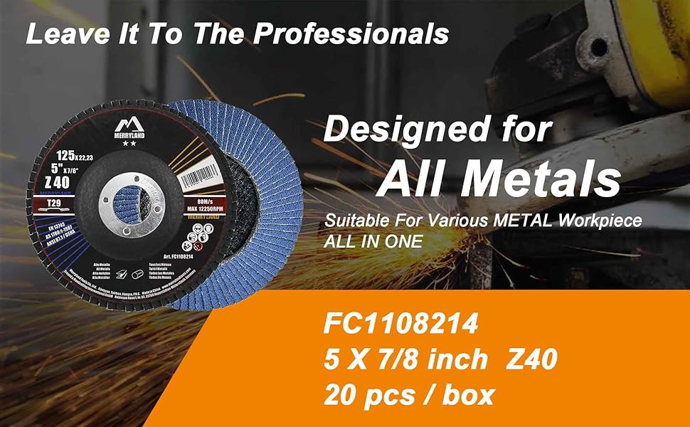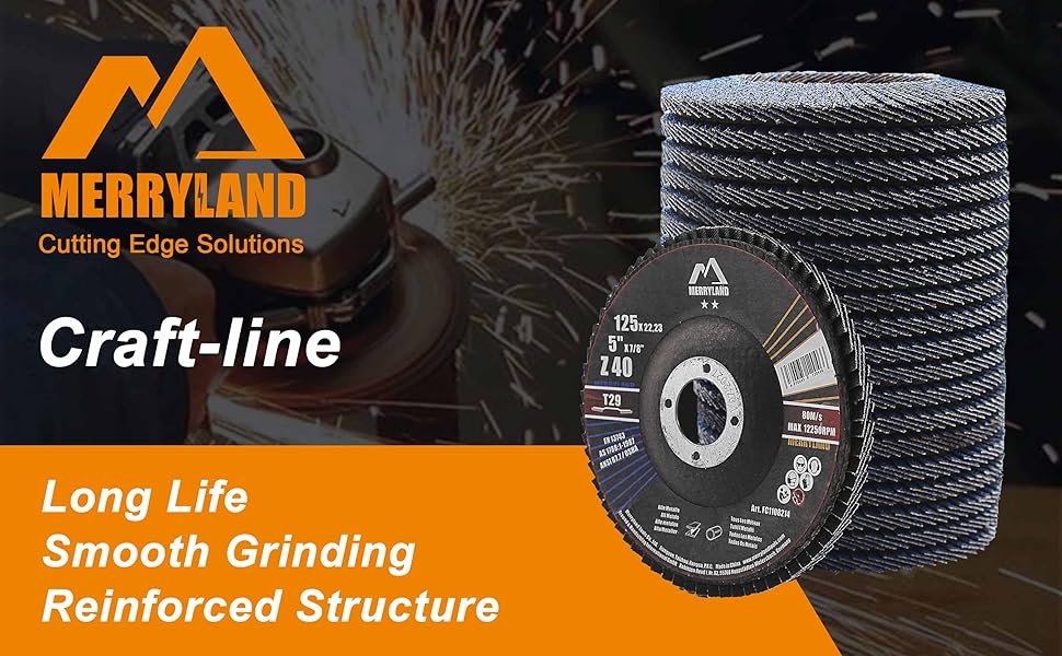 【 LONG LIFE & SMOOTH GRINDING 】 Merryland Flap Disc 5 inch Metal Stainless Steel INOX Grinding for Angle Grinder. Made of European Refined Calcined & Blue Zirconium Corundum Cloth. Craft-Line Flap Wheel. High Quality and Long Life!