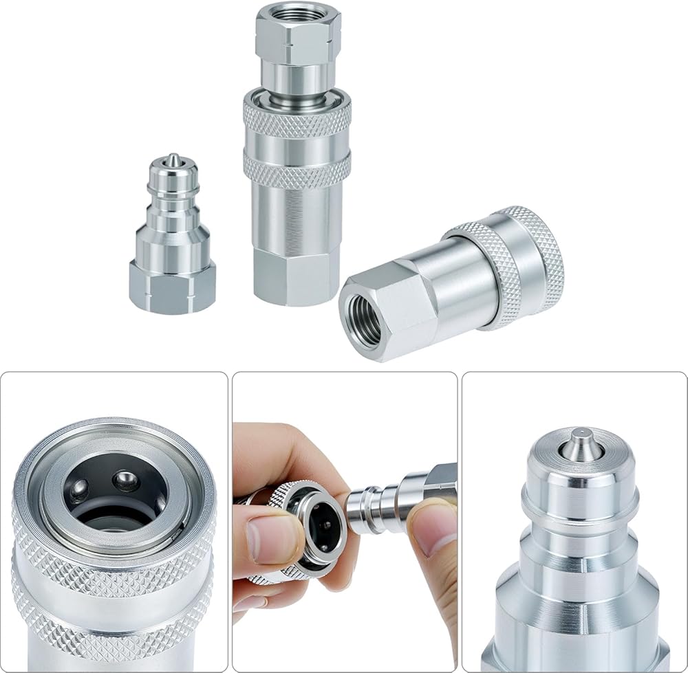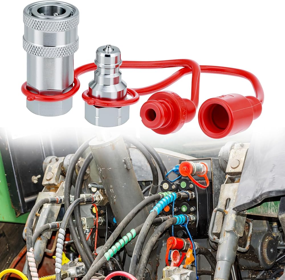 Hydraulic Coupler Set: Optimize your hydraulic systems with this set of two 1/4" quick connect and disconnect couplers designed for seamless integration with agricultural, construction, and logging applications.