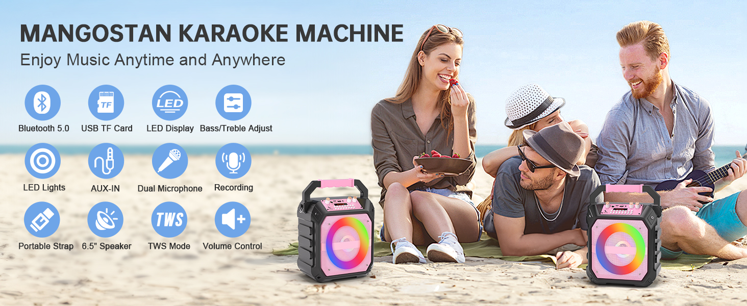 Multifunctional Karaoke Machine: This karaoke machine for adults and kids features Bluetooth 5.0 for faster, more stable, and longer-range wireless connections—keeping the music playing without interruptions. It also supports Micro TF cards, USB flash drives, and AUX input, and is compatible with Android phones, iPhones, iPads, TVs, and PCs. Perfect for home parties, outdoor gatherings, street performances, and gym or classroom teaching.