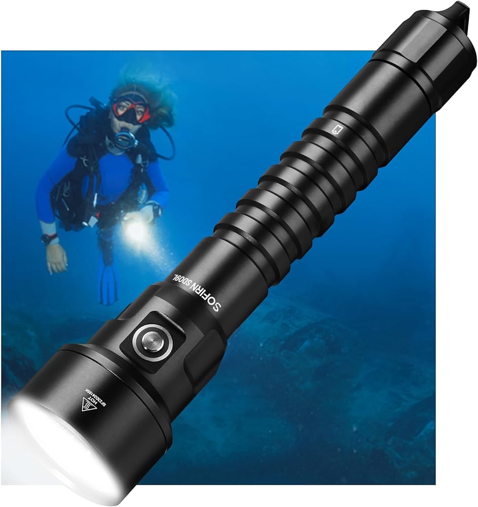 SOFIRN SD09L Scuba Diving Flashlight 6800 High Lumens, Super Bright LED Underwater Dive Light with Rechargeable Power, IPX8 Waterproof Submersible Torch for Night Cave Dives