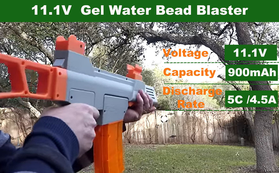 【Wide Application 】: 11.1V 850mAh li-ion batteries compatible with Airsoft Gel Water Bead Blaster splatter. (Only if the voltage, dimension and the plug match, then it will fit)