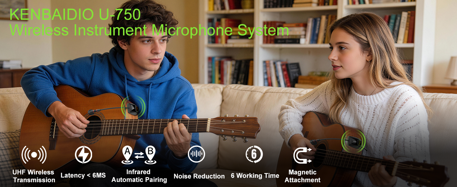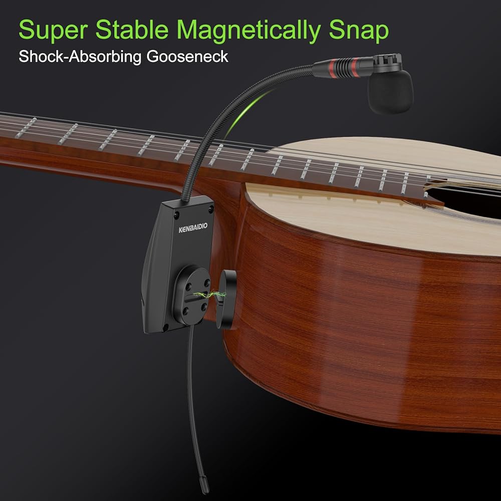 High Quality Sound Reproduction : KENBAIDIO U-750 UHF wireless instrument microphone system built-in highly sensitive cardioid pick-up condenser mic, perfectly capture the soundtrack of the instrument, high-fidelity sound quality, make the sound more clear and realistic while reducing environmental noise. Magnetic clip-on pickup mics system with transmitter and receiver ideal for indoor/outdoor performance, stage, recording, youtube, live streaming, and vlogging performance or teaching. Note: By combining your device, you can adjust the sensitivity (volume) of the transmitter for optimal results.