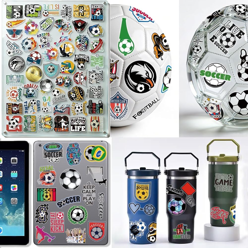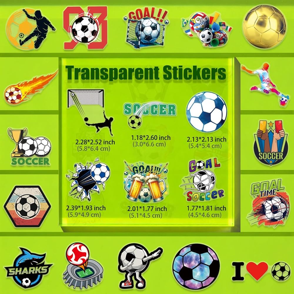 200 Pcs Soccer Stickers for Teens Adults Water Bottle Laptop Phone Case Scrapbooking Bike Luggage Football World Cup Supplies, Waterproof Transparent Sport Car Decals