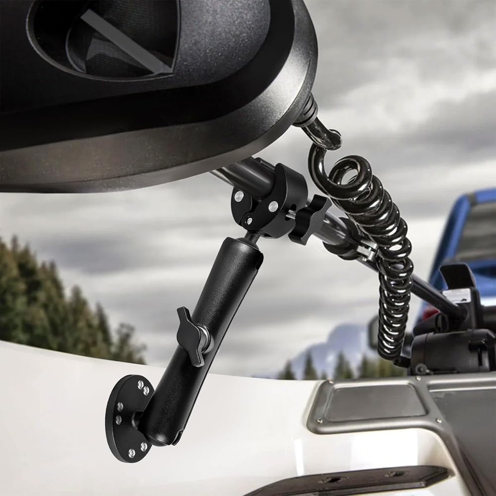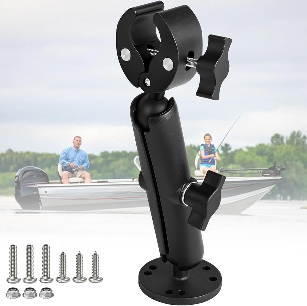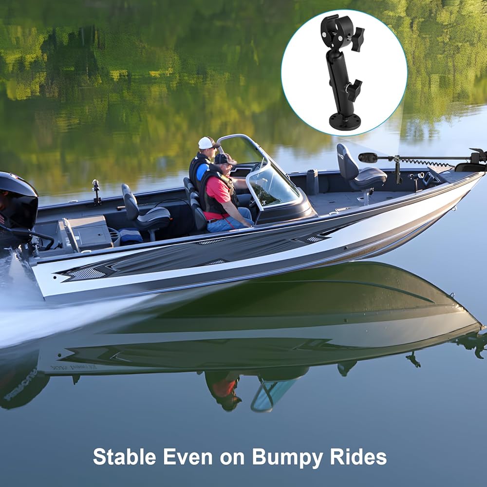 The dual ball head system provides full 360° adjustment and flexible height settings (up to 9.05"), allowing you to perfectly align and lock your trolling motor shaft in place. The strong clamp-on design fits rails and gunwales up to 1.5" thick (0.6"–2" diameter), with anti-slip rubber pads that prevent scratches and ensure a rock-solid hold—no drilling required.