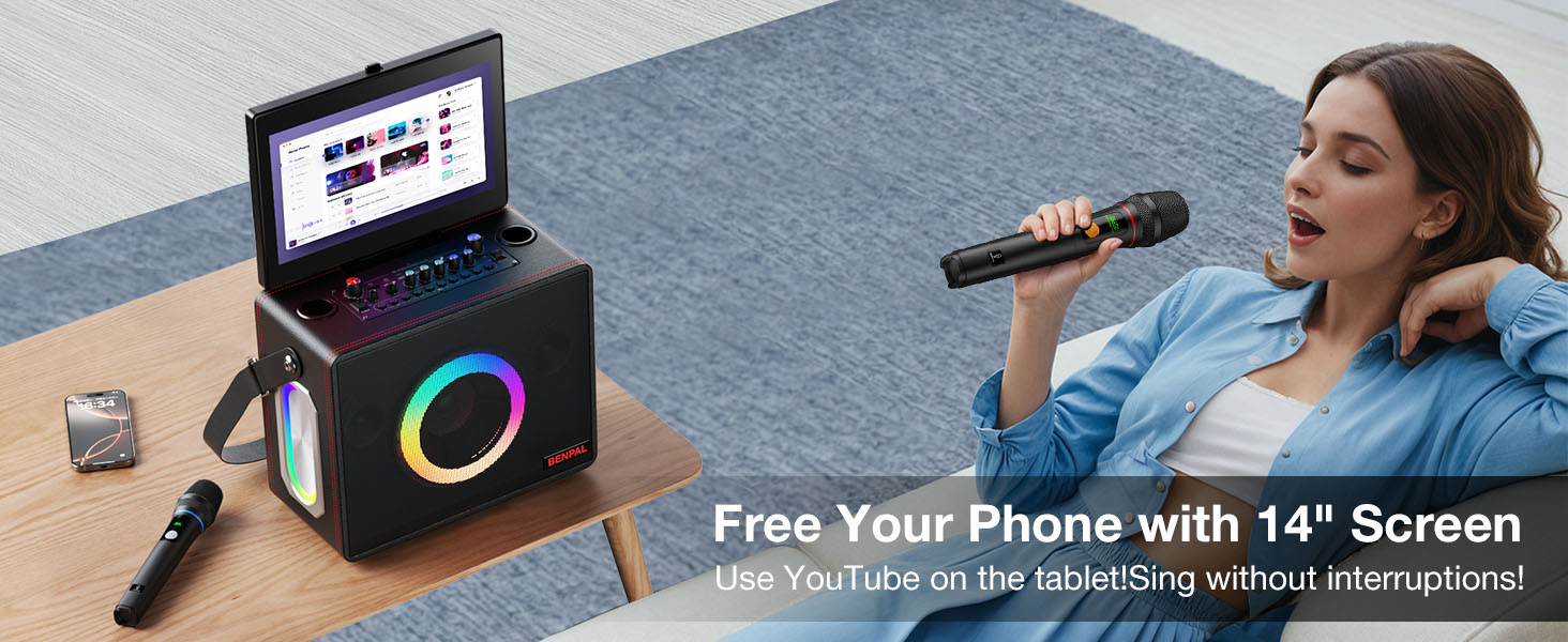 14-Inch HD Touchscreen for Easy Navigation:The 14-inch HD touchscreen offers a clear, responsive interface for selecting songs, adjusting settings, and controlling volume. It's perfect for users of all ages, from beginners to karaoke experts.