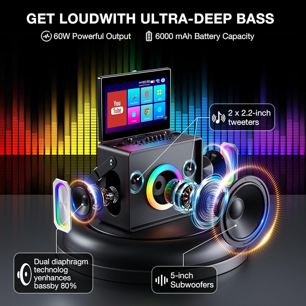 Professional-Grade Sound:With an 800W peak power woofer and advanced bass enhancement, this karaoke machine produces powerful, high-quality sound. Professional vocal effects ensure your voice always sounds its best, delivering a concert-like experience every time you sing.