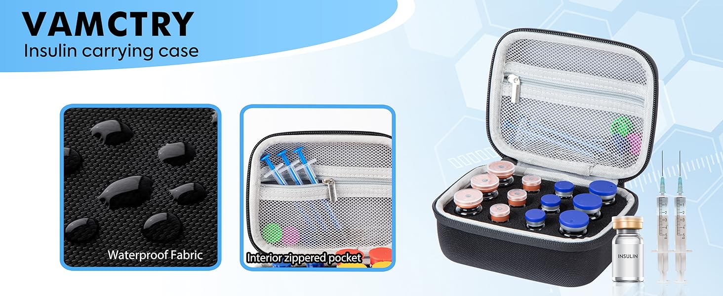 【Waterproof and Anti-collision Design】The insulin vial protector case features a hard shell surface made of high-quality durable waterproof Oxford cloth, with internal elastic shock-resistant EVA material, providing double protection for insulin. The high-density foam lining perfectly fits the interior dimensions of the storage case, securely holding the insulin vial in place to prevent shaking or collision. It ensures your insulin bottle is protected from accidental drops, impacts, and other shocks, avoiding breakage or leakage.