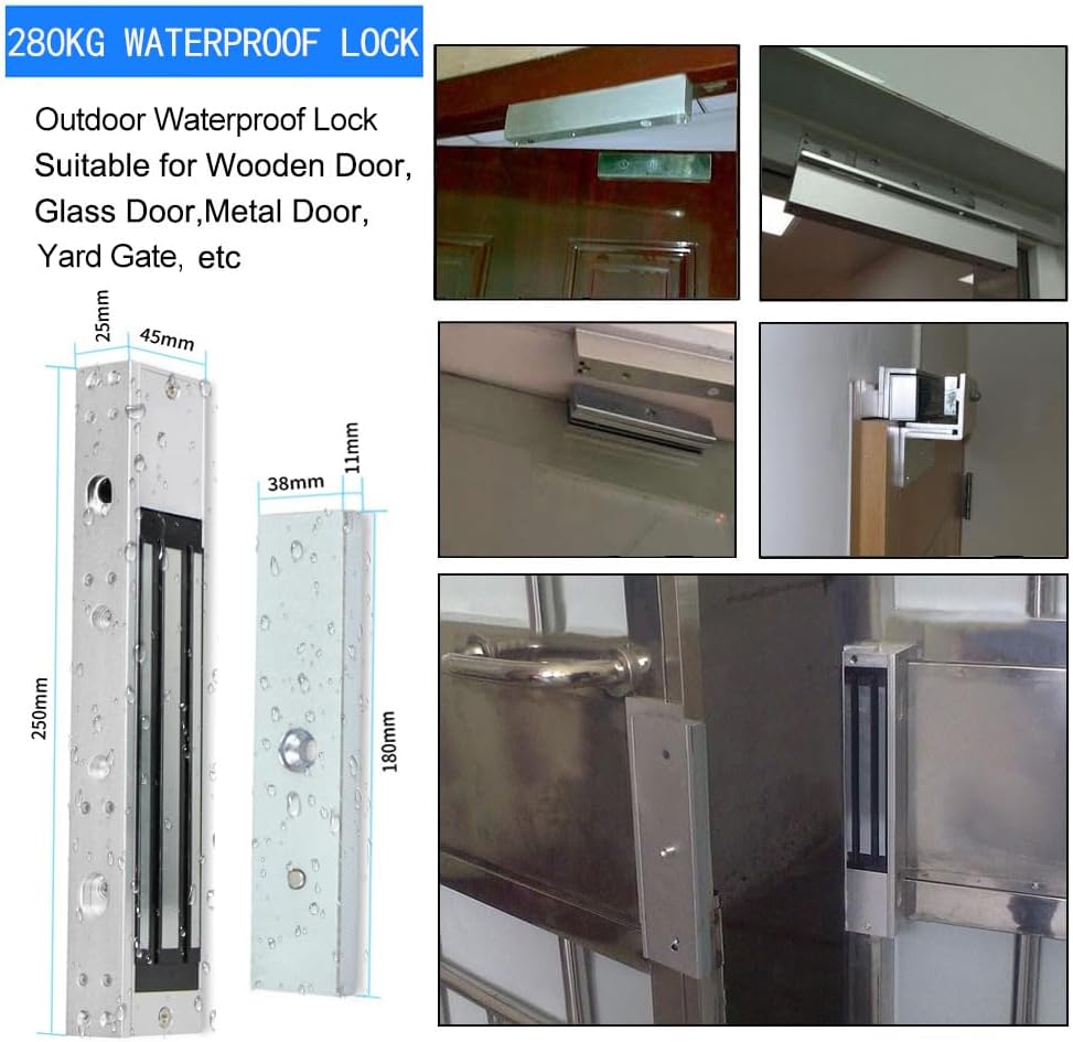 4.280KG (600lbs) electric magnetic lock made by tough stainless steel, which can prevent any human collision and attack, give your family the highest level of safety guarantee. Waterproof material can let you install this access control lock system outside fearlessly.