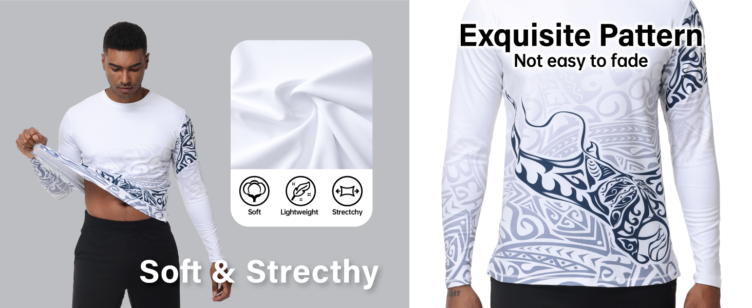 OPTIMAL PERFORMANCE FIT & QUICK-DRY FABRI- Crafted from a 4-way stretch, quick-drying fabric blend (Polyester/Spandex), this shirt offers a comfortable, second-skin fit that moves with you. It provides excellent chafe protection, reduces drag in the water, and dries in minutes, making it perfect for all-day wear.