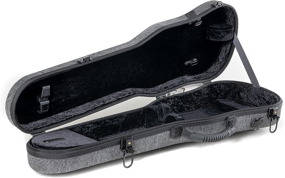 With the GEWA Form Shaped Violin Case Bio I S, you'll find a secure and stylish storage place for your valuable musical instrument. This high-quality case offers a multitude of features that enhance your musical experience and make your everyday life easier. Due to its organic flax shell, the GEWA Form Shaped Violin Case Bio I S weighs only about 1.6 kg, making it easy to carry and transport. The soft handle ensures comfortable carrying, while the two removable backpack straps allow for flexible use. Inside the violin case, you'll find a padded suspension system that keeps your instrument safe and protected. In addition, the violin case is equipped with a GEWA swivel bow holder for 2 bows, so you always have the necessary equipment at hand. A handy accessory compartment provides additional storage space for sheet music, rosin, or other smaller items. Visually, the GEWA Form Shaped Violin Case Bio I S impresses with its stylish design: externally grey and internally lined with black velvet, it's a real eye-catcher. With the GEWA Form Shaped Violin Case Bio I S, you're opting for a high-quality, functional, and aesthetically pleasing music accessory that meets the requirements of every musician.