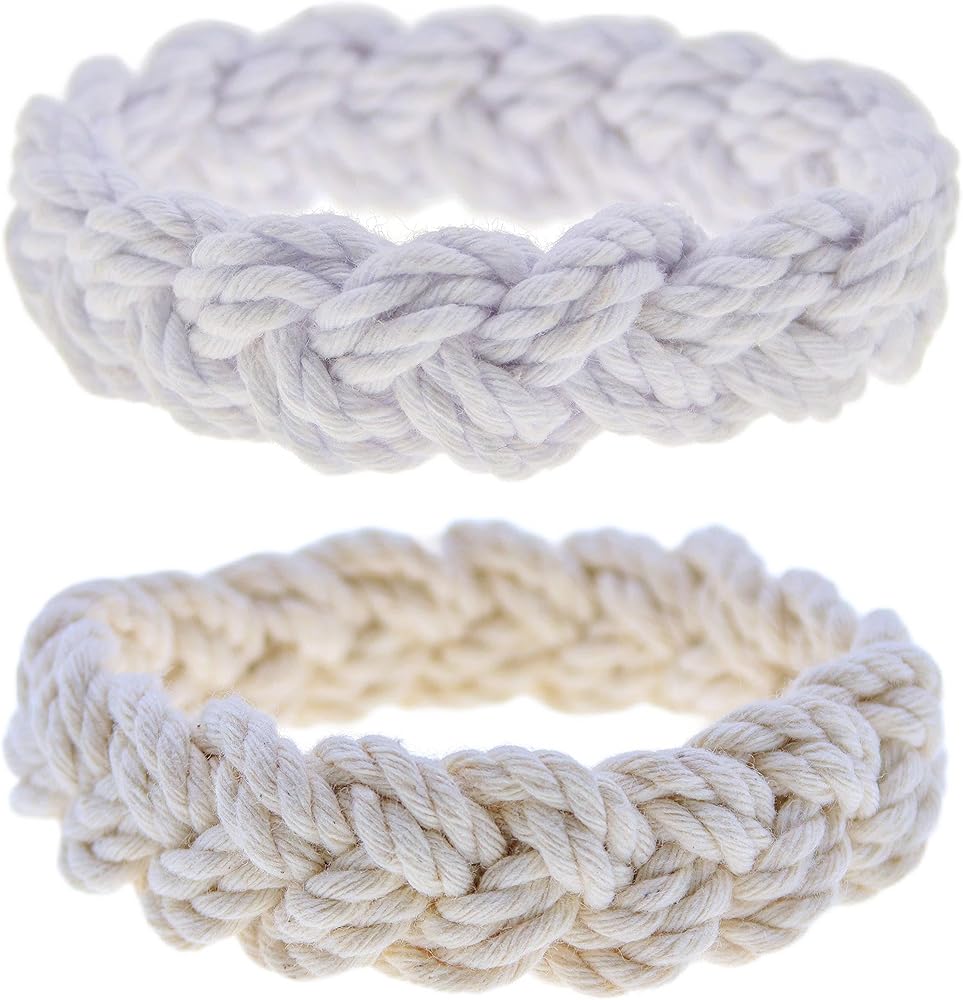 - Natural and white braided rope fisherman bracelets, great for teens, men and women