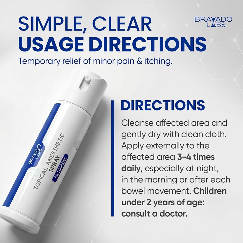 MAXIMUM STRENGTH 5% LIDOCAINE SPRAY: This topical lidocaine spray contains 5% lidocaine HCl, the maximum strength allowed for OTC external anesthetic use . Adults may apply to the affected area up to 6 times daily unless directed by a doctor . Children under 12 years should consult a doctor before use. For external use only on intact skin.