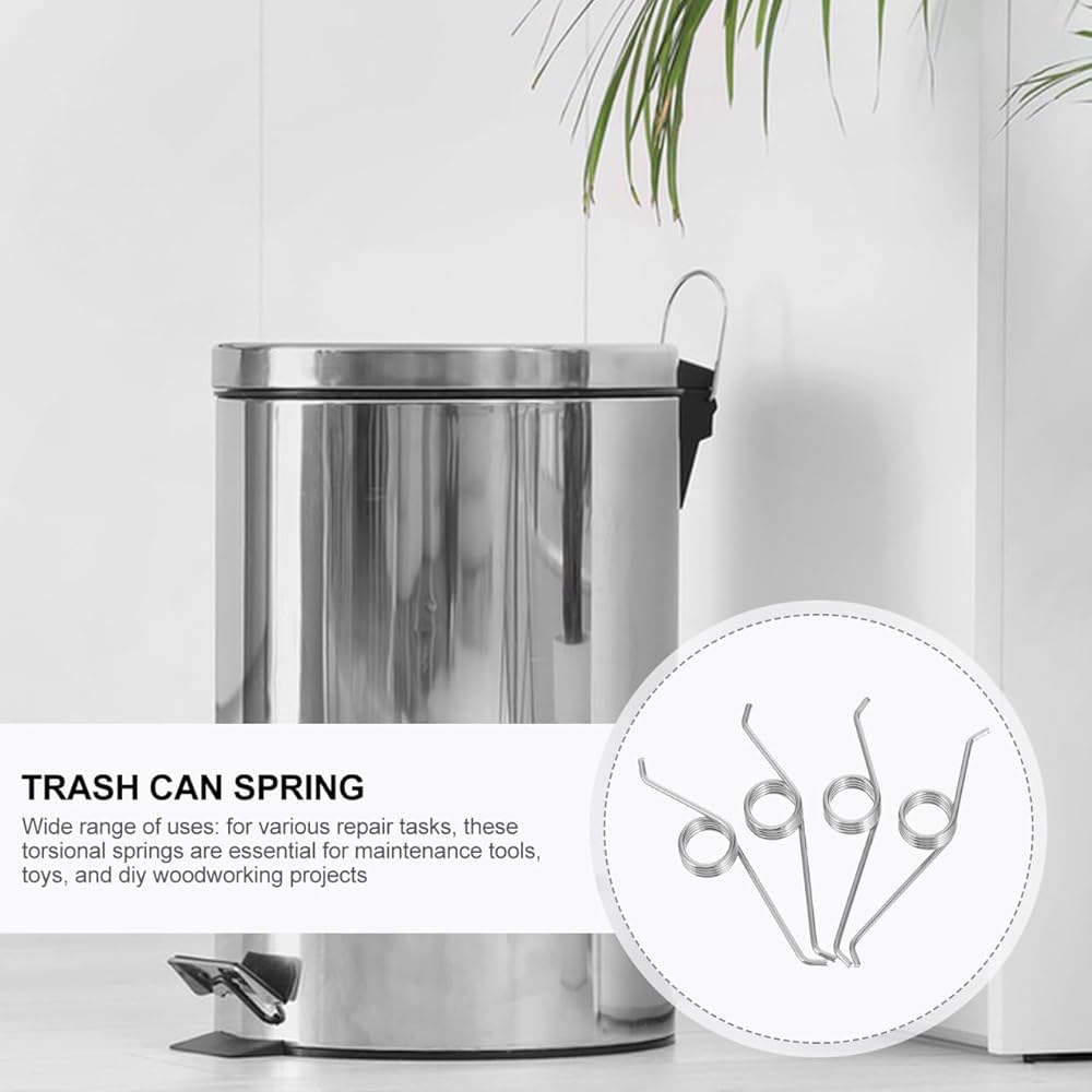 4-piece set of stainless steel torsion springs is designed to replace broken or worn-out springs in most step, touchless, and pedal-operated kitchen and office trash cans, restoring proper lid function
