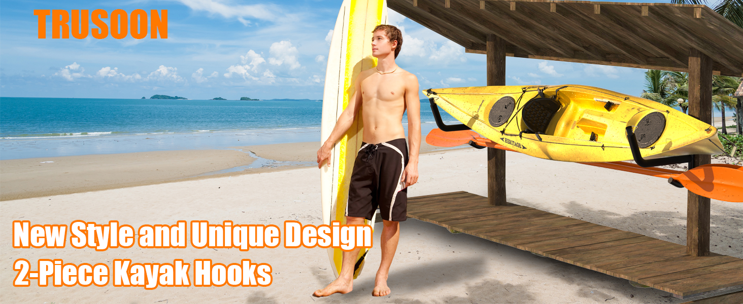 Space Saving: This kayak hooks for garage wall lifts your kayak or canoe off the ground and stores it neatly and vertically, freeing up valuable floor space in your garage or home.