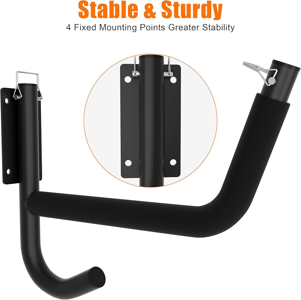 Heavy-Duty Capacity: Made from premium steel with a protective powder-coated finish for rust resistance and durability. This kayak wall rack supports up to 300 lbs—ideal for securely storing kayaks, canoes, and other heavy gear. Strong, stable, and built for reliable wall storage.