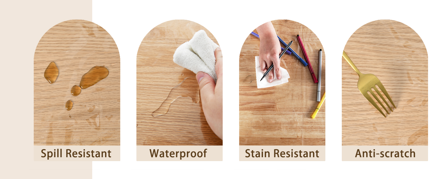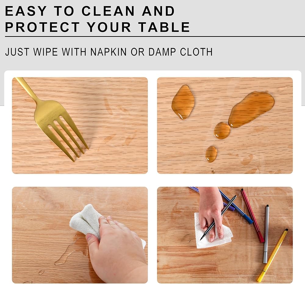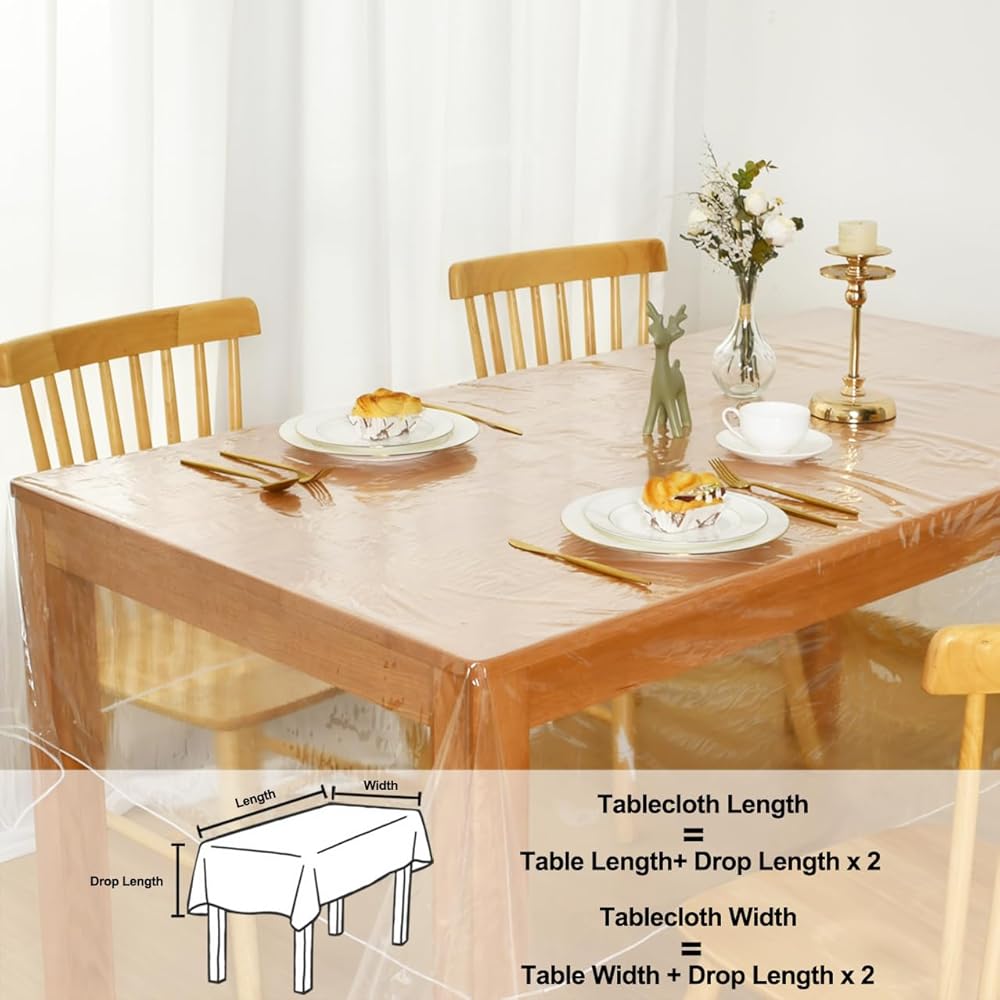 Waterproof&Stain-Resistant: PVC Crystal Clear plastic table cover protector tablecloth provides excellent protection against spills, stains, and scratches, keeping both your table and elegant tablecloth looking pristine and extending their lifespan