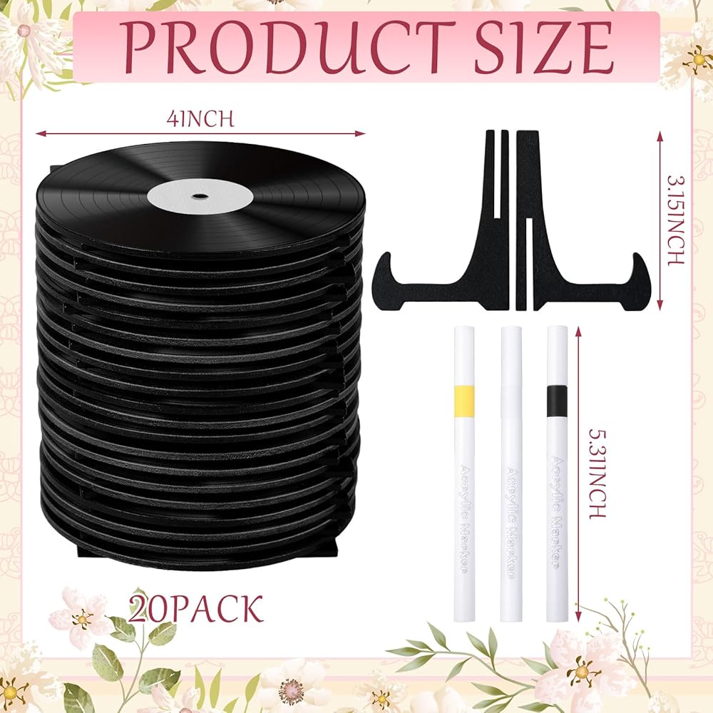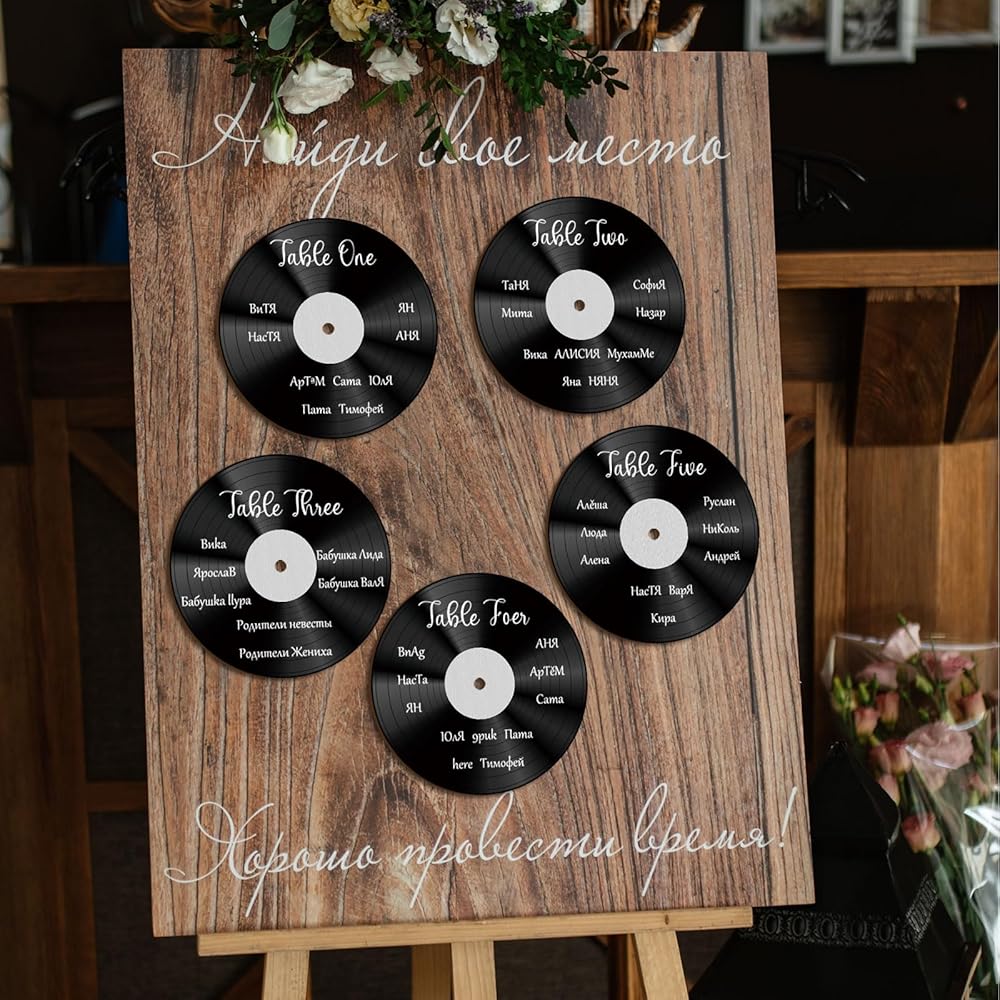 Vinyl record signs are suitable for weddings, buffet coding, used as table decoration or table number plates, used for food display, table decoration, name tags, and small number signs