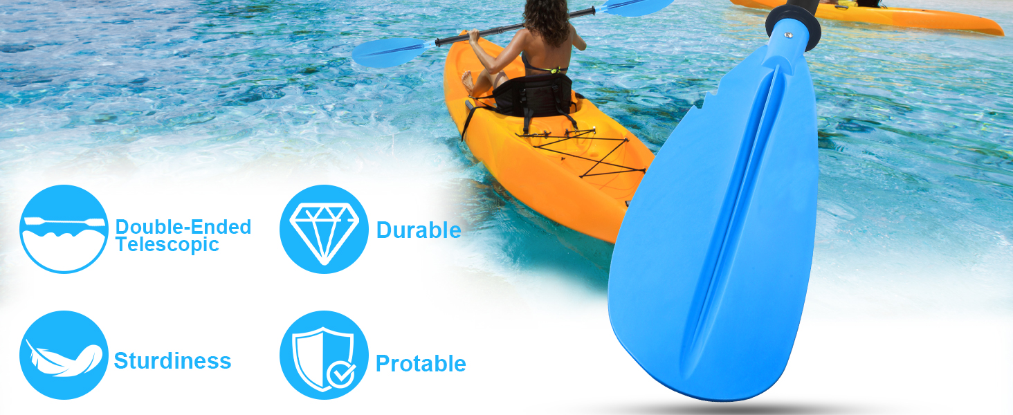 Product design: paddles come with a free bungee paddle leash. It helps secure your paddle to your kayak, especially when you want to lay down the oars, stop by a little bit to enjoy great views around. The paddle is with 3 locking positions for different kayaking angle preference. The drip rings at two ends help stop water flowing from the blades. So, the shaft and your hands won't get wet easily.