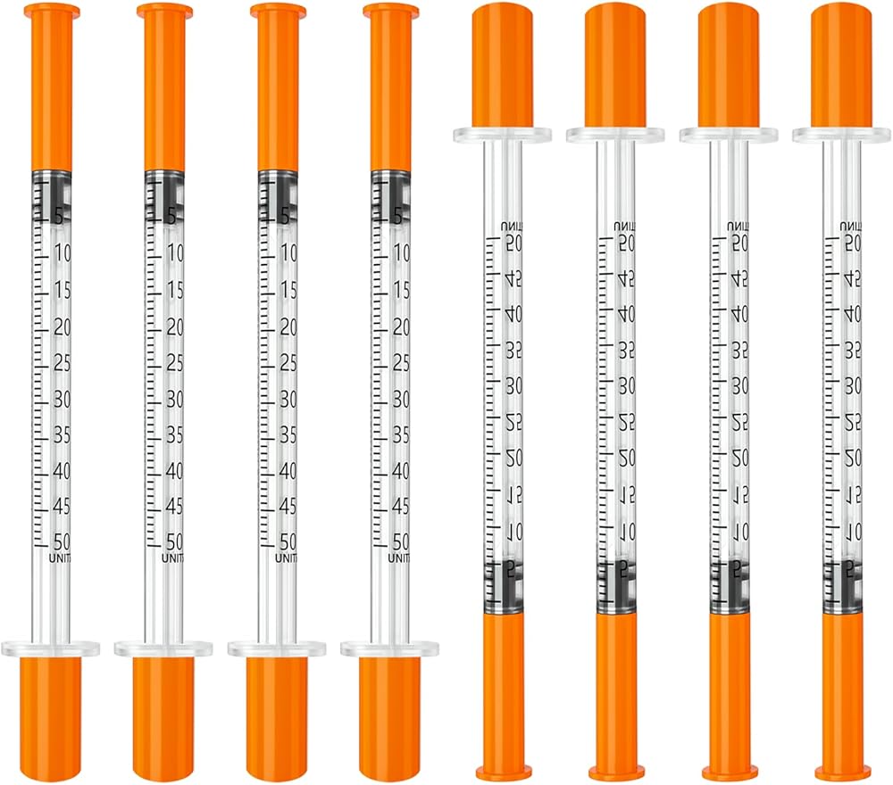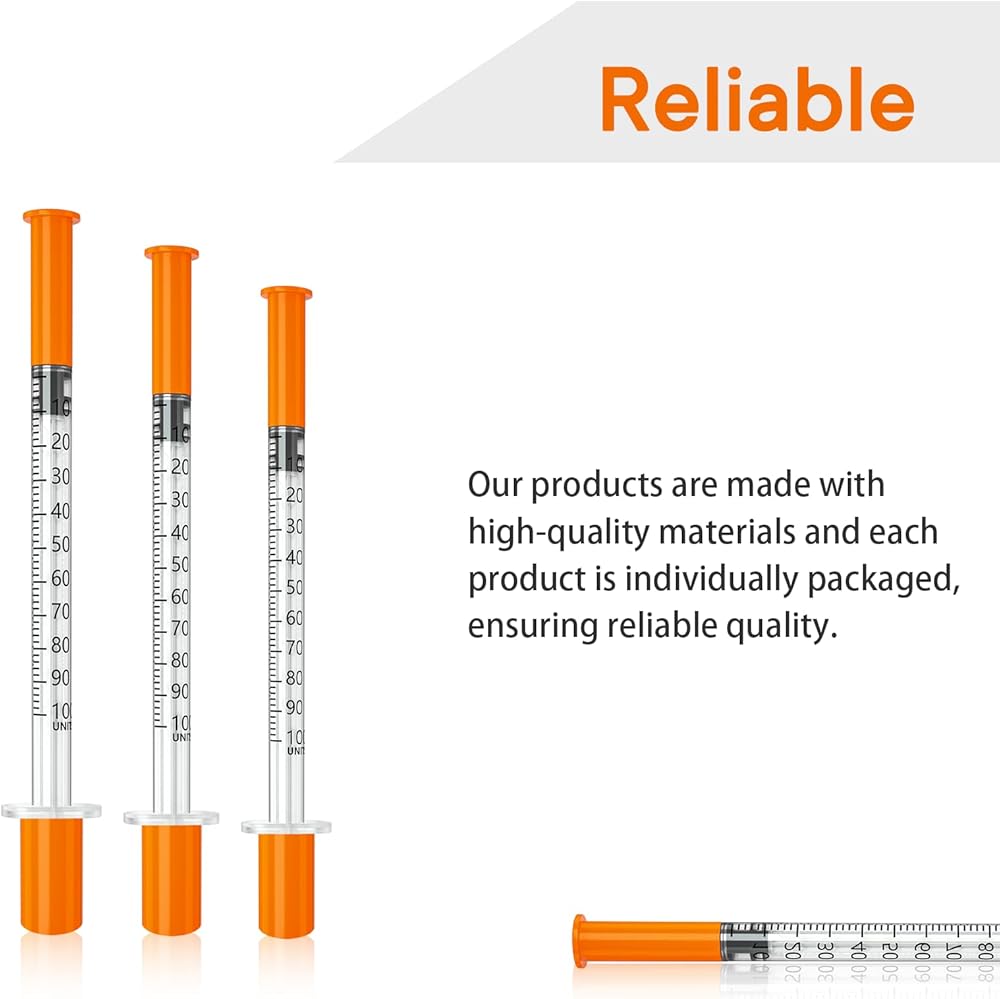 jeringas con agujas para inyectar, 0.5mL 31G 5/16" (8mm) jeringas de insulina, Individually Wrapped, 100 Pack