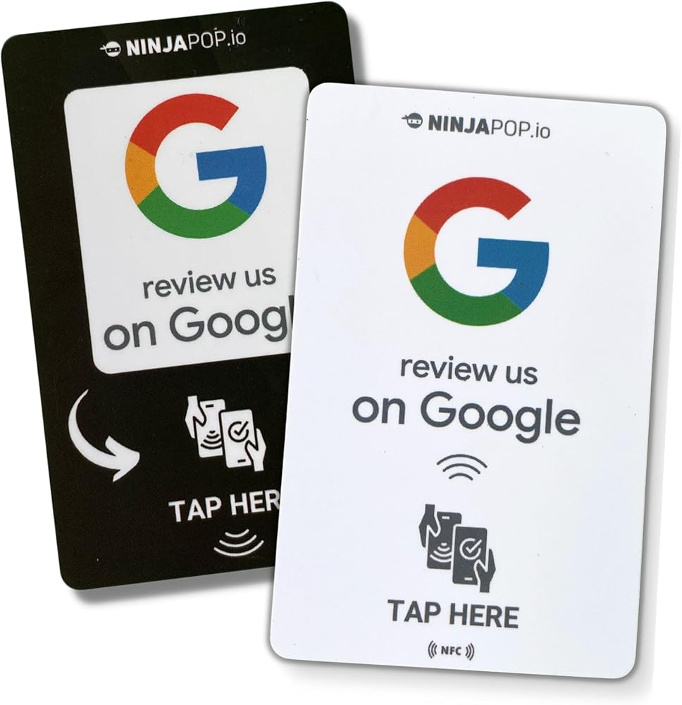 Ninja Pop NFC Google Review Cards –| Tap to Leave a Review Cards for Small Business | Contactless Review Request Cards | Customer Feedback NFC Business Tools (2 Cards)