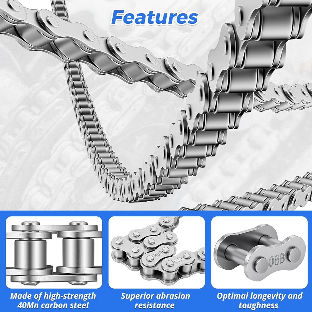 Package Included: 1 x 10 Feet 08B standard chain; 12 x connecting links