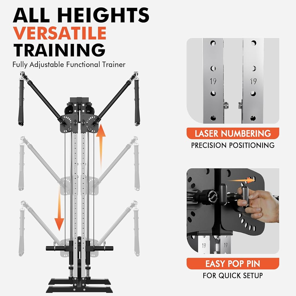 [All-in-One Cable Machine Home Gym] Experience unmatched versatility with over 100 exercise options targeting various muscle groups. The adjustable design ensures smooth, fluid movements for effective strength training in a compact footprint.