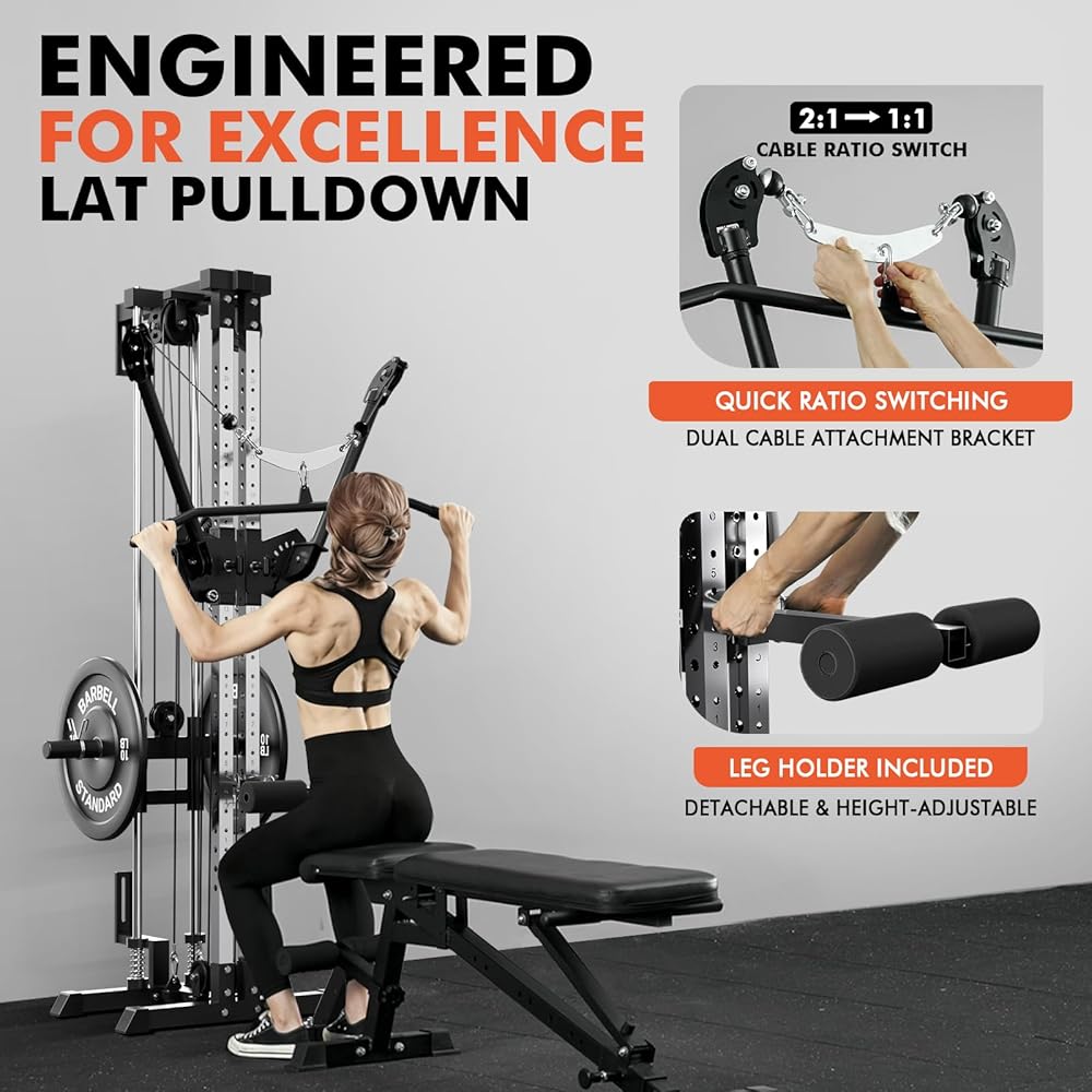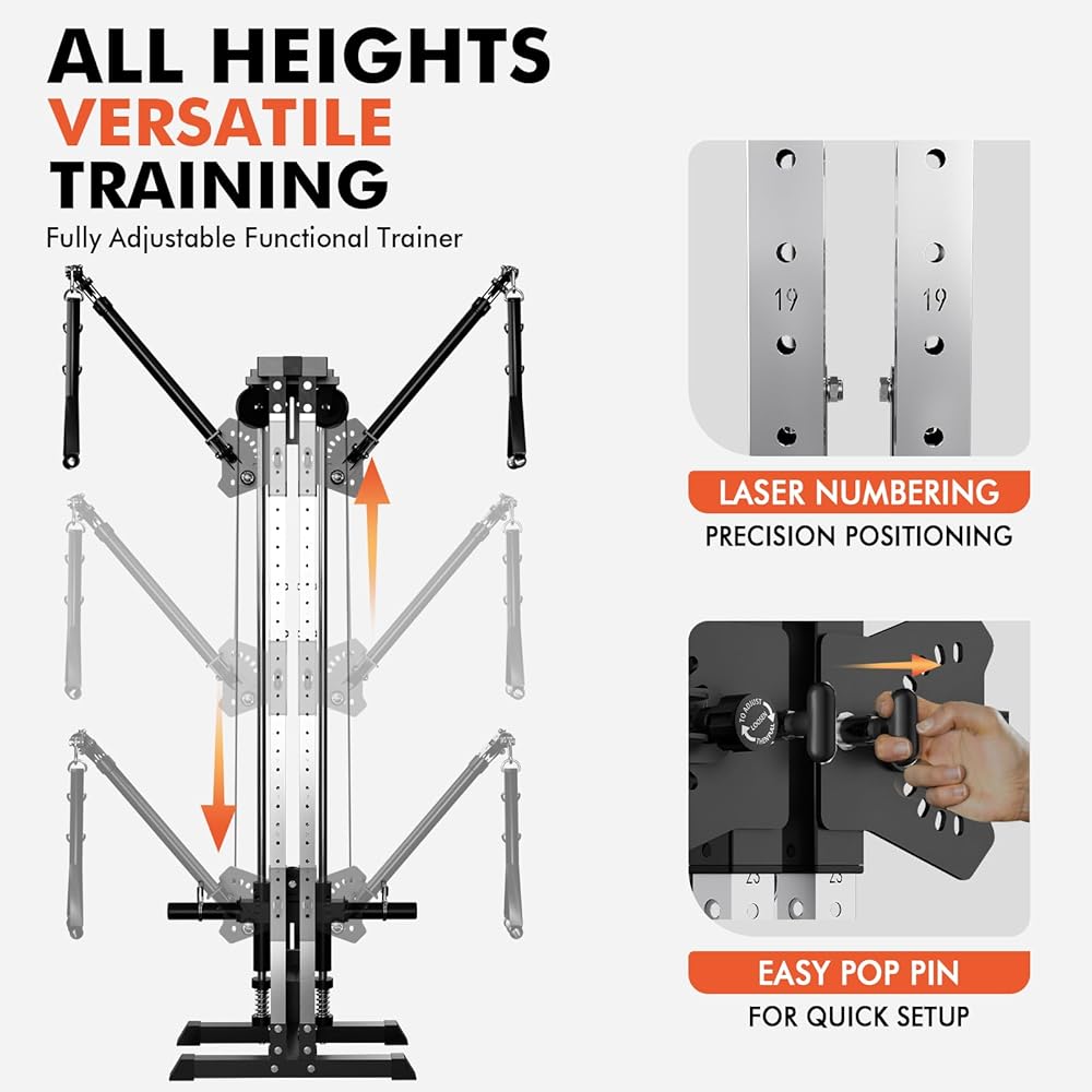 [Easily Adjustable Cable Ratios] The dual cable attachment bracket of this cable crossover machine allows you to switch between 2:1 and 1:1 cable resistance, allowing you to adapt your workout intensity to meet a wide range of fitness goals.