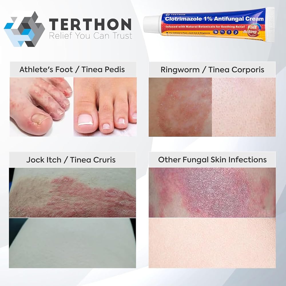 ✅Powerful Dual-Action Formula: Combines Clotrimazole 1%, a clinically proven antifungal ingredient, with natural herbal extracts for effective relief from athlete's foot, ringworm, jock itch, and other common fungal irritations. Targets the source of discomfort while supporting skin balance.