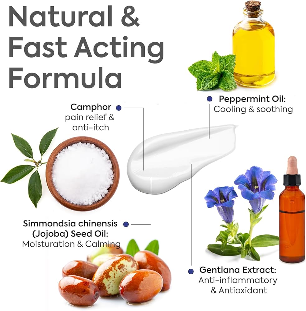 ✅Enhanced with Herbal and Botanical Ingredients: Infused with Camphor, Peppermint Oil, Gentiana Extract, and Jojoba Seed Oil, this advanced formula works naturally to soothe itching, burning, and redness while providing a refreshing, cooling sensation and promoting comfort.