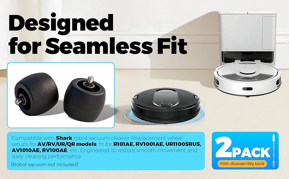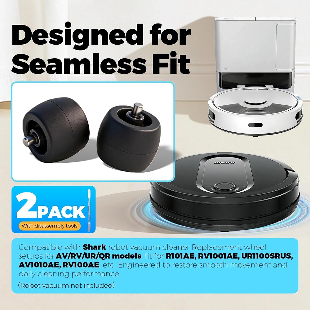 Designed for Seamless Fit - Compatible with Shark robot vacuum cleaner Replacement wheel setups for AV/RV/UR/QR models, fit for R101AE, RV1001AE, UR1100SRUS, AV1002AE, AV1010AE, RV100AE, etc. Engineered to restore smooth movement and daily cleaning performance