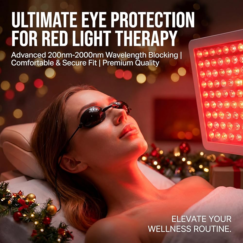 【Professional Light Protection】Designed specifically for red light therapy, these glasses safeguard your eyes from direct exposure to harmful red light and infrared rays. With effective protection across wavelengths from 200 to 2000 nanometers, they allow you to undergo treatment with confidence—enjoying optimal comfort and reliable light protection during every session.