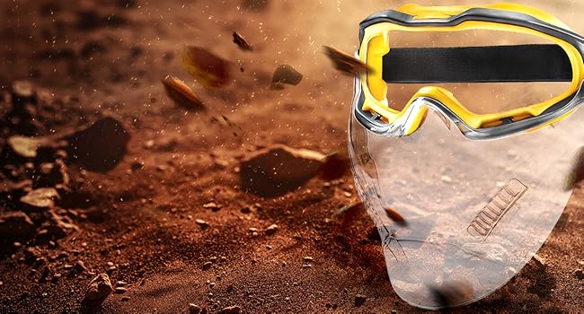 [Adjustable Headband & Compatible with Vented Face Mask]: The adjustable headband ensures a secure and comfortable fit for all head sizes. These goggles are designed to work seamlessly with a vented face mask, offering full-face protection. Ideal for use in classrooms, laboratories, homes, workplaces, and outdoor activities in dusty conditions.
