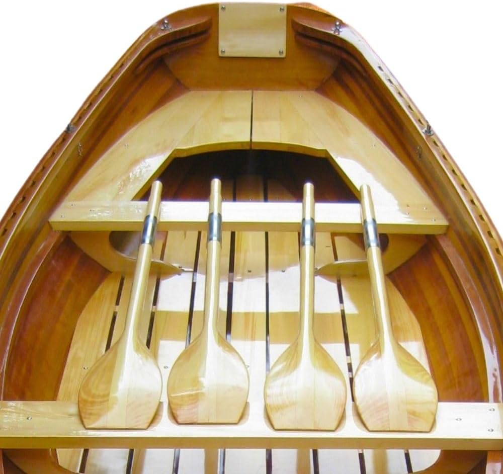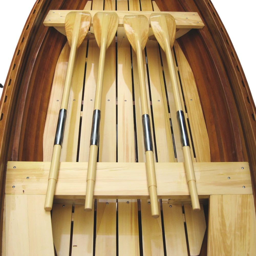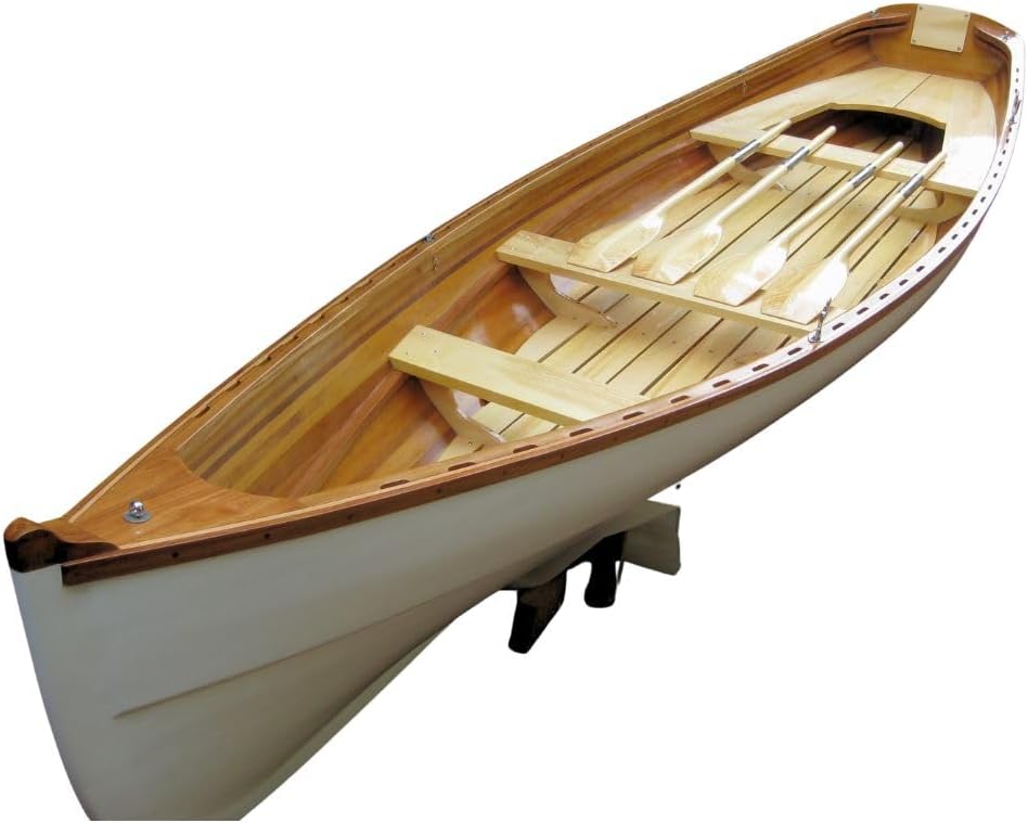 With centuries of history and tradition behind it, this dinghy is especially made with an eye on recreating the past while using the best materials available today. We believe in the traditions of the boat makers of old, and we apply those to all of our watercraft so that we can offer you an experience like no other. Hand joined strips of cedar come together as though effortlessly and are then coated with a special resin that increases the boat's strength and durability. Truly, at least 600-800 hours have been invested in the creation of this watercraft. We leave nothing to chance and perfection is the only option we allow. * Length : 17 feet * Beam: 53.5 inches * Bow depth: 33 inches. * Mid Height: 20 inches * Transom DIM: 28.5 H x 30 W. * Max Horse Power: 10hp. * Weight: 334lbs * Capacity: 5 person Features: * Composite hull outside to protect the wood * Finished with a strong beautiful and long lasting gelcoat * Beech Gunwell * Beautiful Design: The Whitehall Dinghy has a smooth shape and gentle curves, giving it a nice look on the water. * Quality Materials: Made from Canadian western red cedar, yellow cedar and strong hardwoods, this whitehall dinghy is built to last and feels warm and inviting. * Stable and Steady: Its wide shape and keel in the bottom make the dinghy very stable, so it's easy to steer in calm waters or gentle waves. * Spacious Capacity: The whitehall dinghy for sale can comfortably hold up to 5 people, making it perfect for family outings or trips with friends. * Easy rowing: Designed for smooth rowing, the Whitehall dinghy makes rowing easy and enjoyable for everyone, from beginners to experienced rowers.